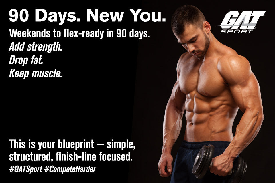 This 90-day program adapts Olympia strategies for weekend warriors, structured in three 30-day phases: Hypertrophy, Strength, and Power/Conditioning. Each phase includes workouts, nutrition, supplementation, and cardio protocols: HIIT in Phase 1 for metabolic priming, and fasted LISS in Phases 2 and 3 for leaning out. The Complete GAT Sport Stack: Nitraflex Advanced, Deep Wood, Flexx EAAs, Creatine, and Nitraflex Glycerol, supports every step.